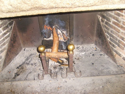 Warming up by the fire.